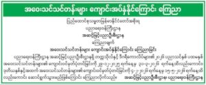 အဝေးသင် သင်တန်းများ ကျောင်းအပ်နှံနိုင်ကြောင်း ကြေညာခြင်း December 22, 2025Uncategorized 1.myan_mlm_25-compressed 2.eng_mlm_25 3.geog_mlm_25-compressed 4.hist_mlm_25 (3) 5.phil_mlm_25 6.psy_mlm_25 7.os_mlm_25 8.law_mlm_25 9.chem_mlm_25 10.phys_mlm_25 11.maths_mlm_25 12.zool_mlm_25 13.bot_mlm_25 Share this article Facebook Twitter LinkedIn Email Previous Article ၂၀၂၅-၂၀၂၆ ပညာသင်နှစ် ကျောင်းသား၊ကျောင်းသူများ သိရှိနိုင်ရန် အချက်အလက်များ Next Article မော်လမြိုင်တက္ကသိုလ် ကျွမ်းကျင်မှုအတတ်ပညာ( Job- Ready Skills) Certificate သင်တန်းလျှောက်လွှာခေါ်ယူခြင်း You might also like မော်လမြိုင်တက္ကသိုလ် ကျွမ်းကျင်မှုအတတ်ပညာ( Job- Ready Skills) Certificate သင်တန်းလျှောက်လွှာခေါ်ယူခြင်း December 29, 2025 ၂၀၂၅-၂၀၂၆ ပညာသင်နှစ် ကျောင်းသား၊ကျောင်းသူများ သိရှိနိုင်ရန် အချက်အလက်များ November 18, 2025 မော်လမြိုင်တက္ကသိုလ် ဝင်ခွင့်ရရှိသူများစာရင်း(၂၀၂၅ ခုနှစ်အောင်) November 13, 2025